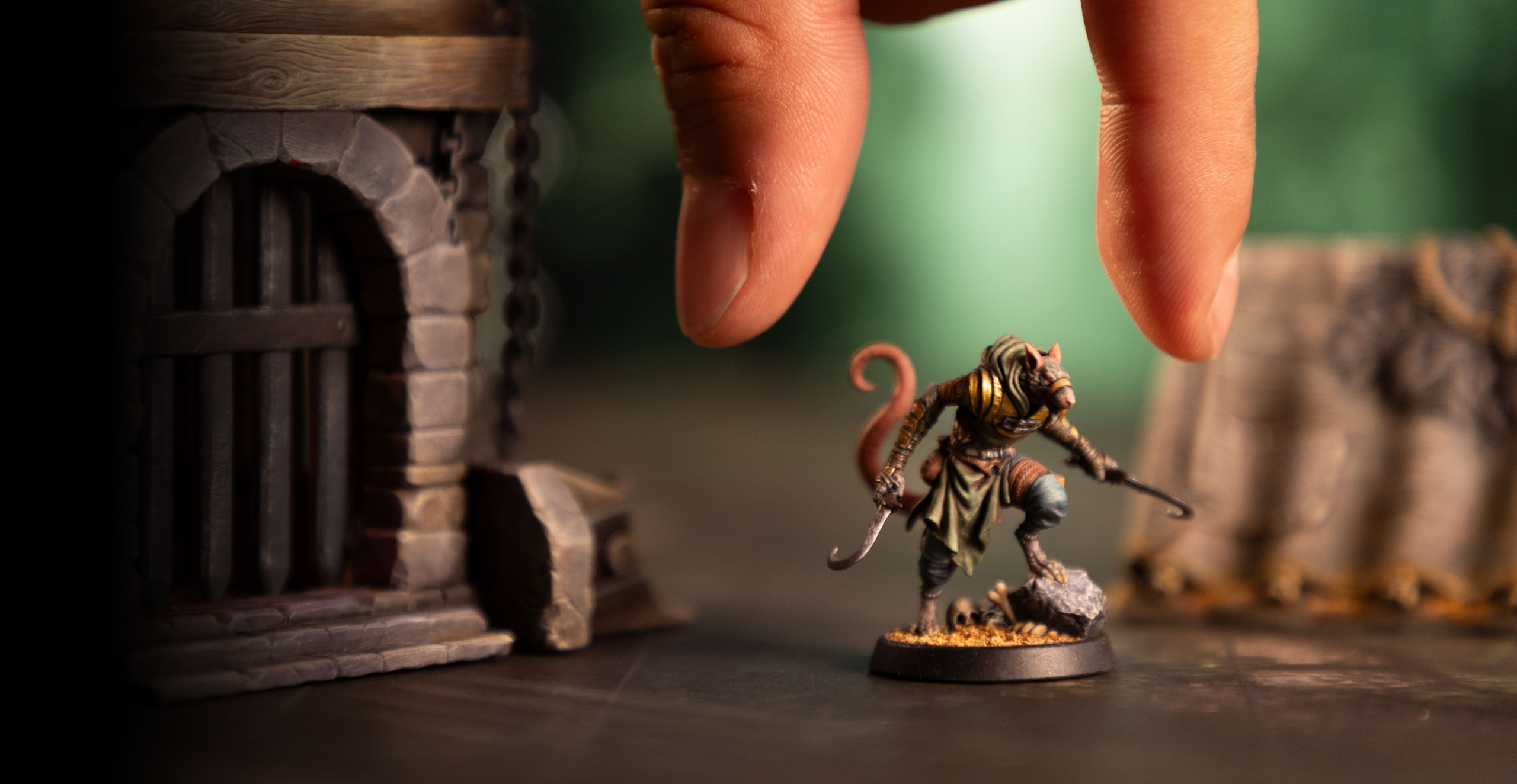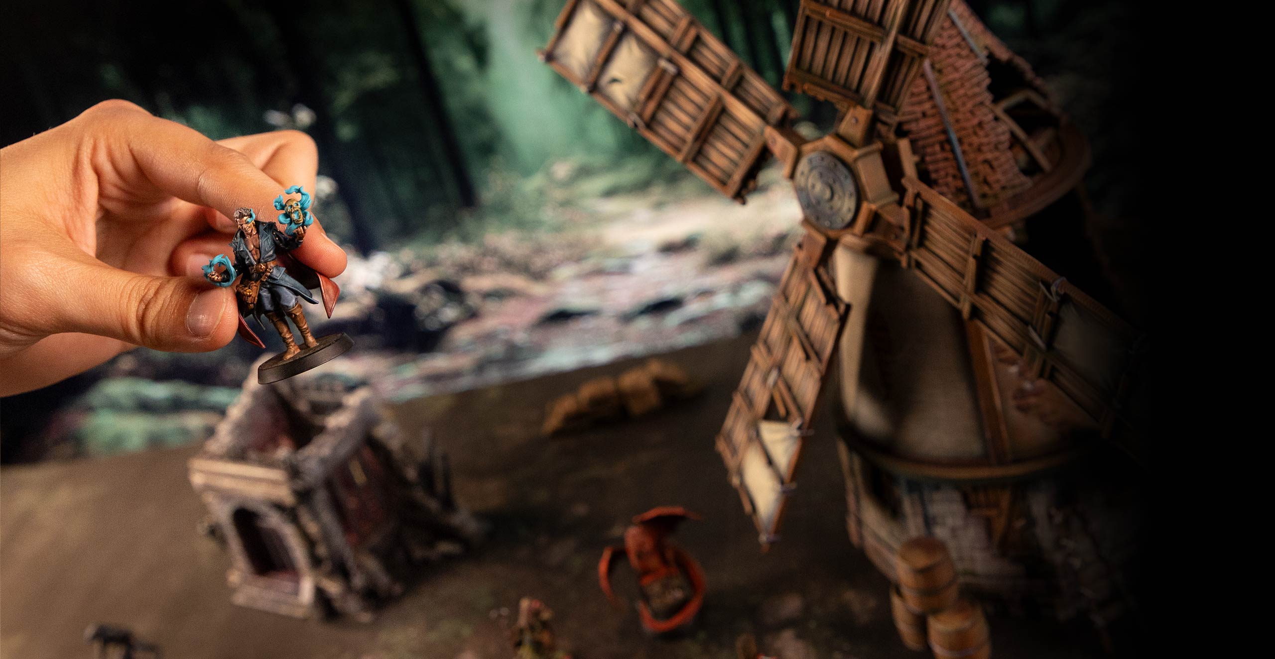 Includes 3 heroes, 6 terrain pieces, 5 props, and 1 pet—everything you need to bring your tabletop to life.